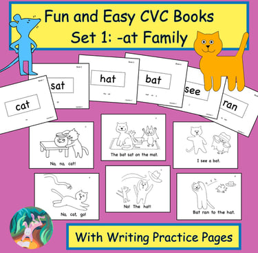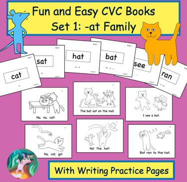 This book is the first in a series of step-by-step books that follow the adventures of familiar characters making reading engaging and meaningful. Set 1 covers decodable words in the -at family as well as early sight words. It's non-pattern, simple text helps beginner readers master the early skill of one-to-one correspondence. Each book builds on the decodable words and sight words from the previous books, helping your early readers feel successful at every step in their reading progress.